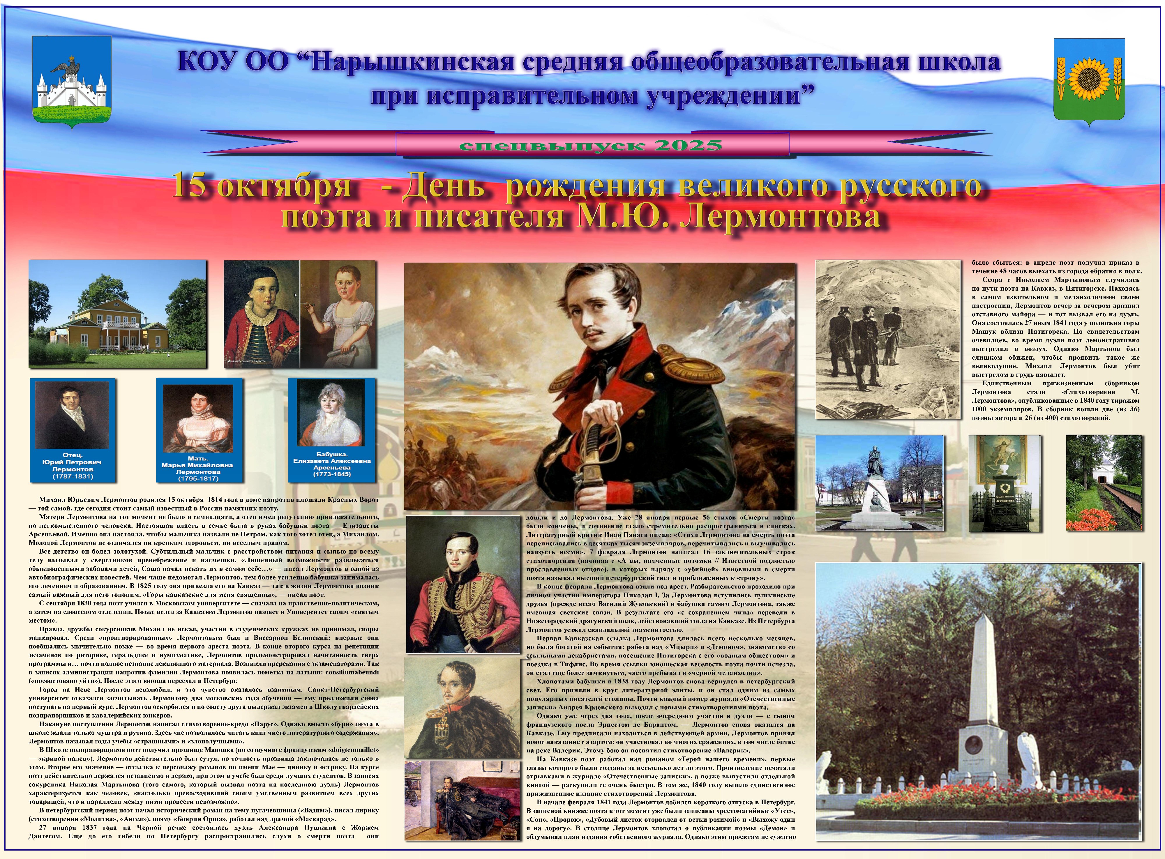 В образовательном учреждении 15 октября 2025 г. издан спецвыпуск стенной печати, посвящённый 211-й годовщине со дня рождения писателя.