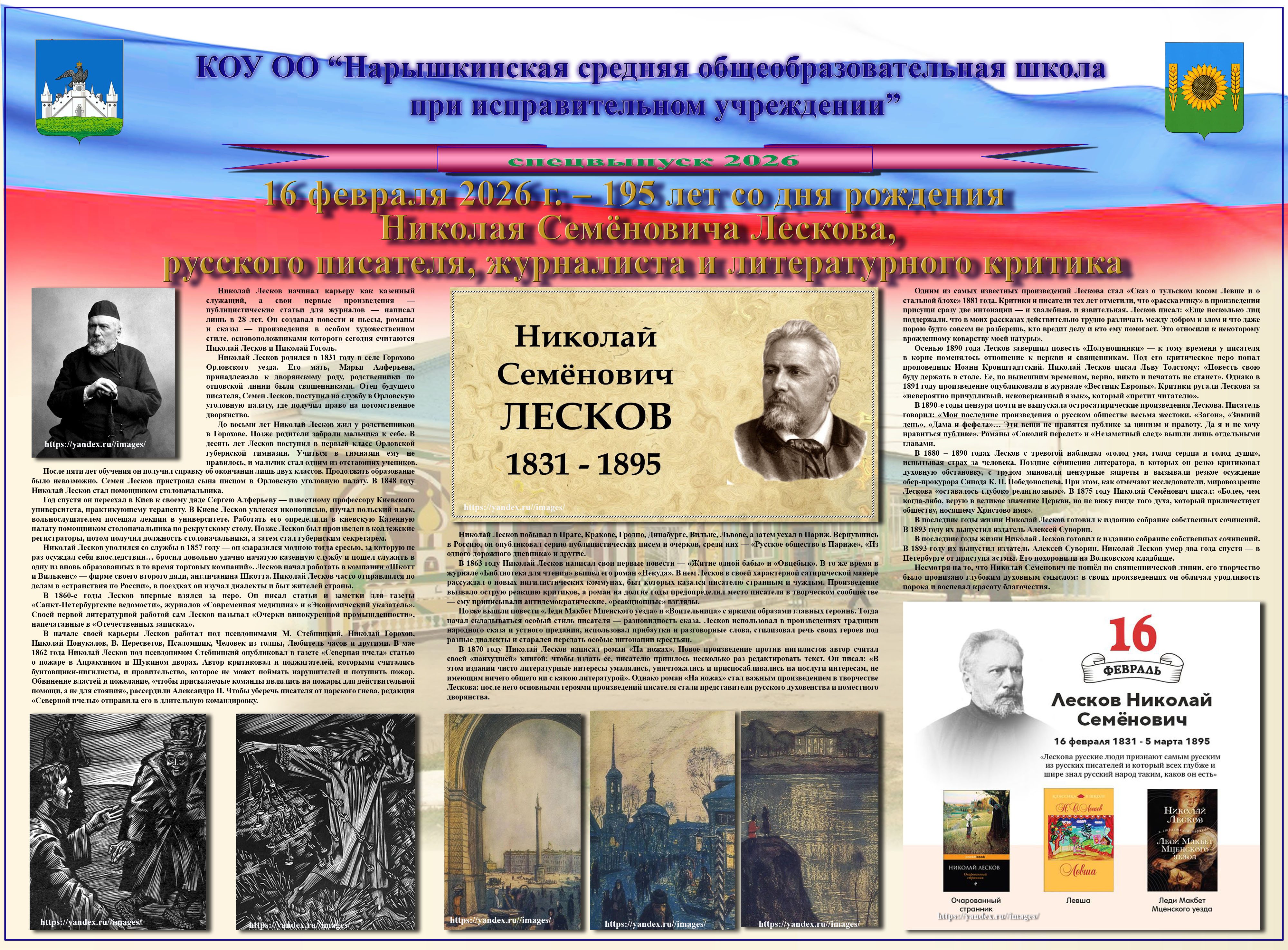 16 февраля 2026 г. в образовательном учреждении издан спецвыпуск стенной печати, посвящённый 195-летию со дня рождения писателя.