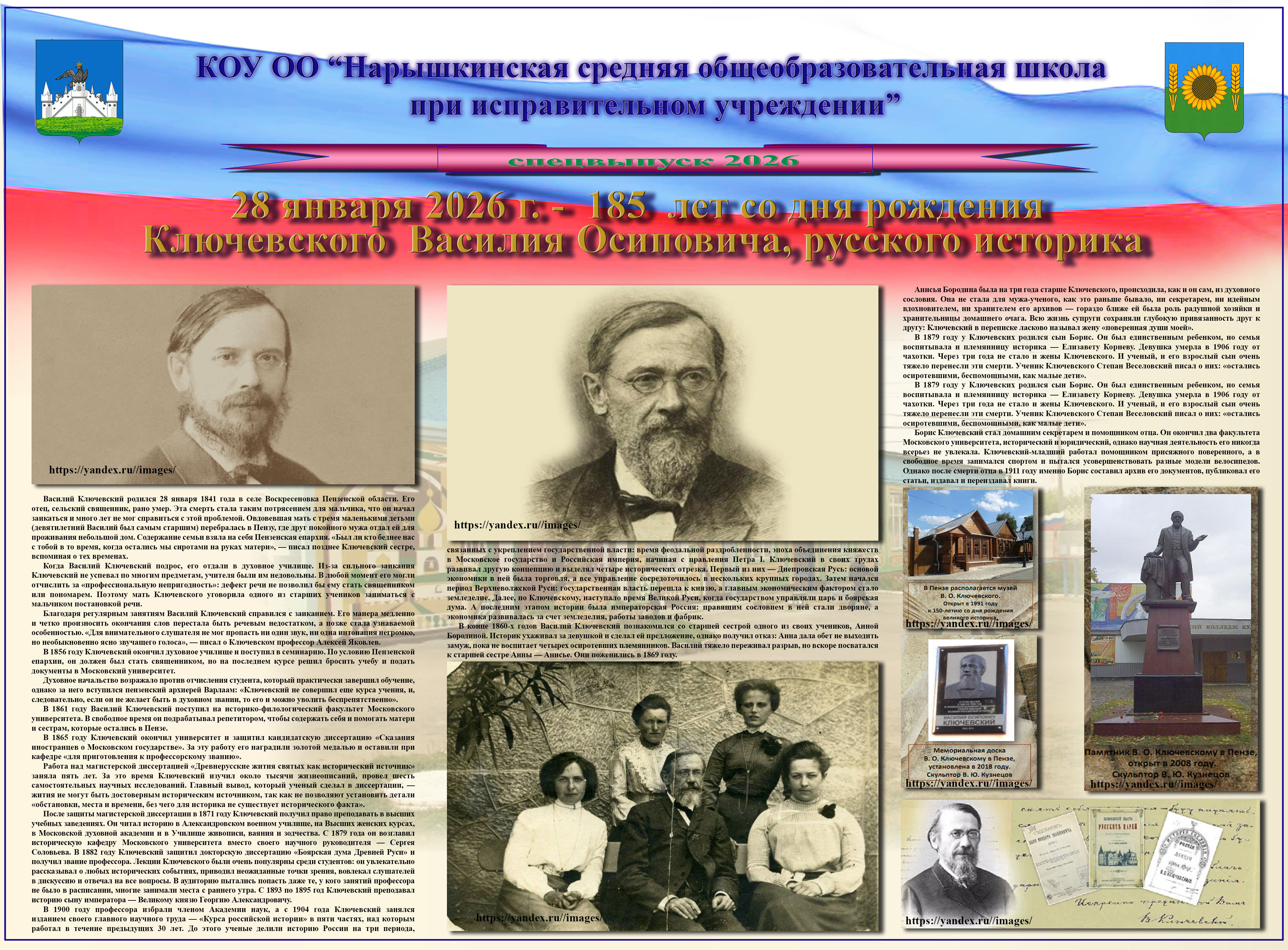 28 января 2026 г. в образовательном учреждении издан спецвыпуск стенной печати, посвящённый 185-летию со дня рождения Ключевского Василия Осиповича.