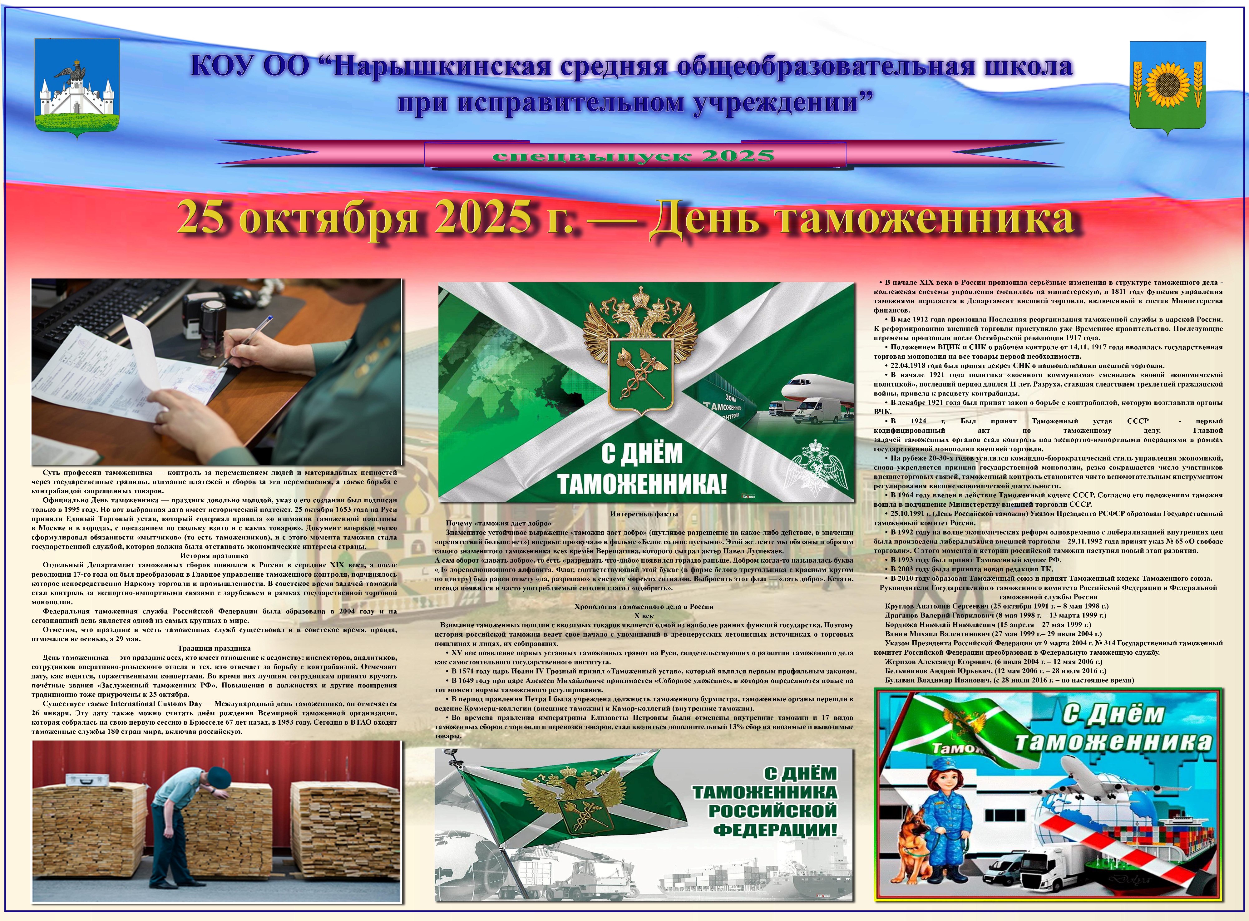 В образовательном учреждении 25 октября 2025 г. издан спецвыпуск стенной печати, посвящённый Дню таможенника.