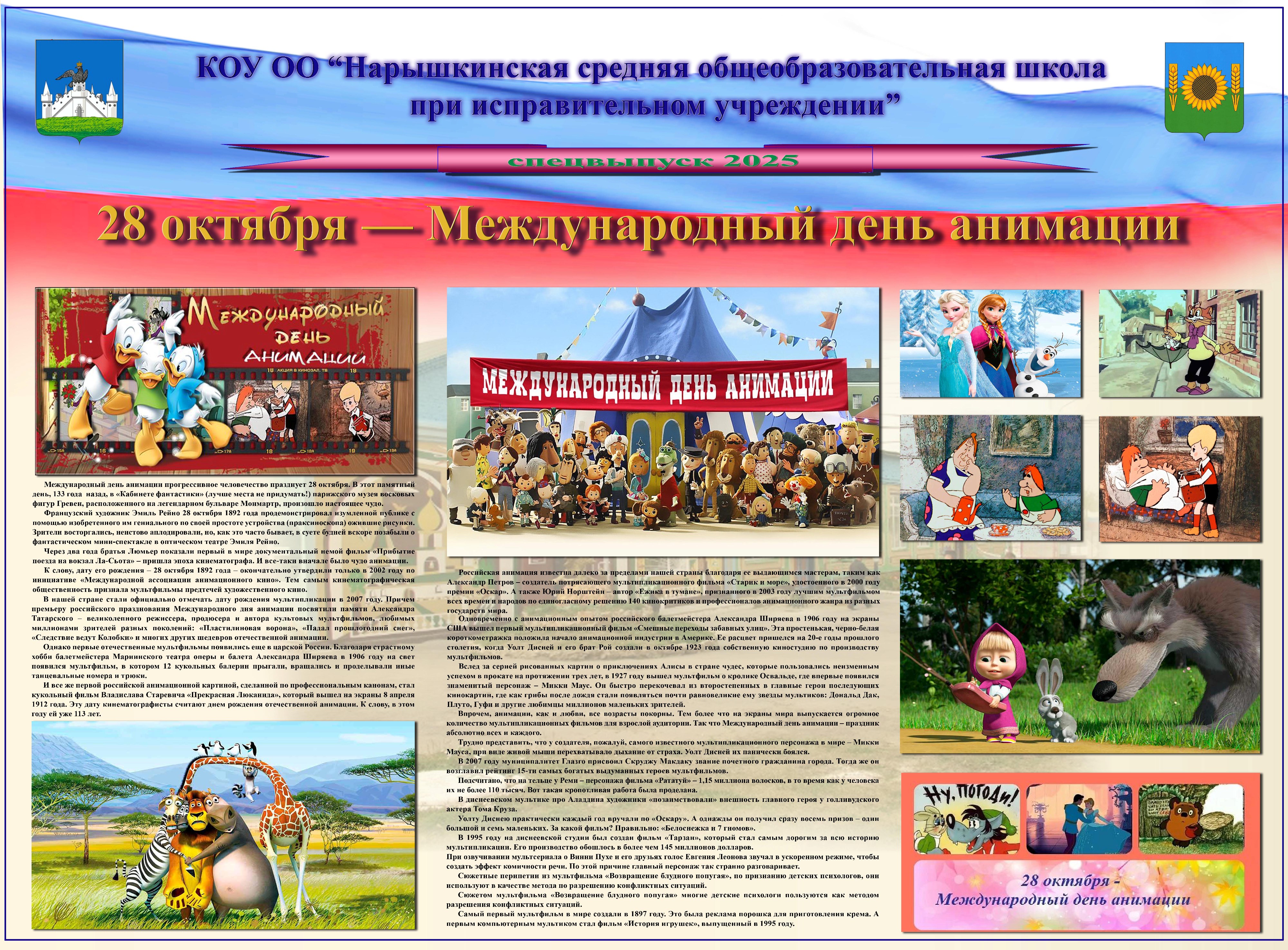 В образовательном учреждении 28 октября 2025 г. издан спецвыпуск стенной печати, посвящённый Международному дню анимации.