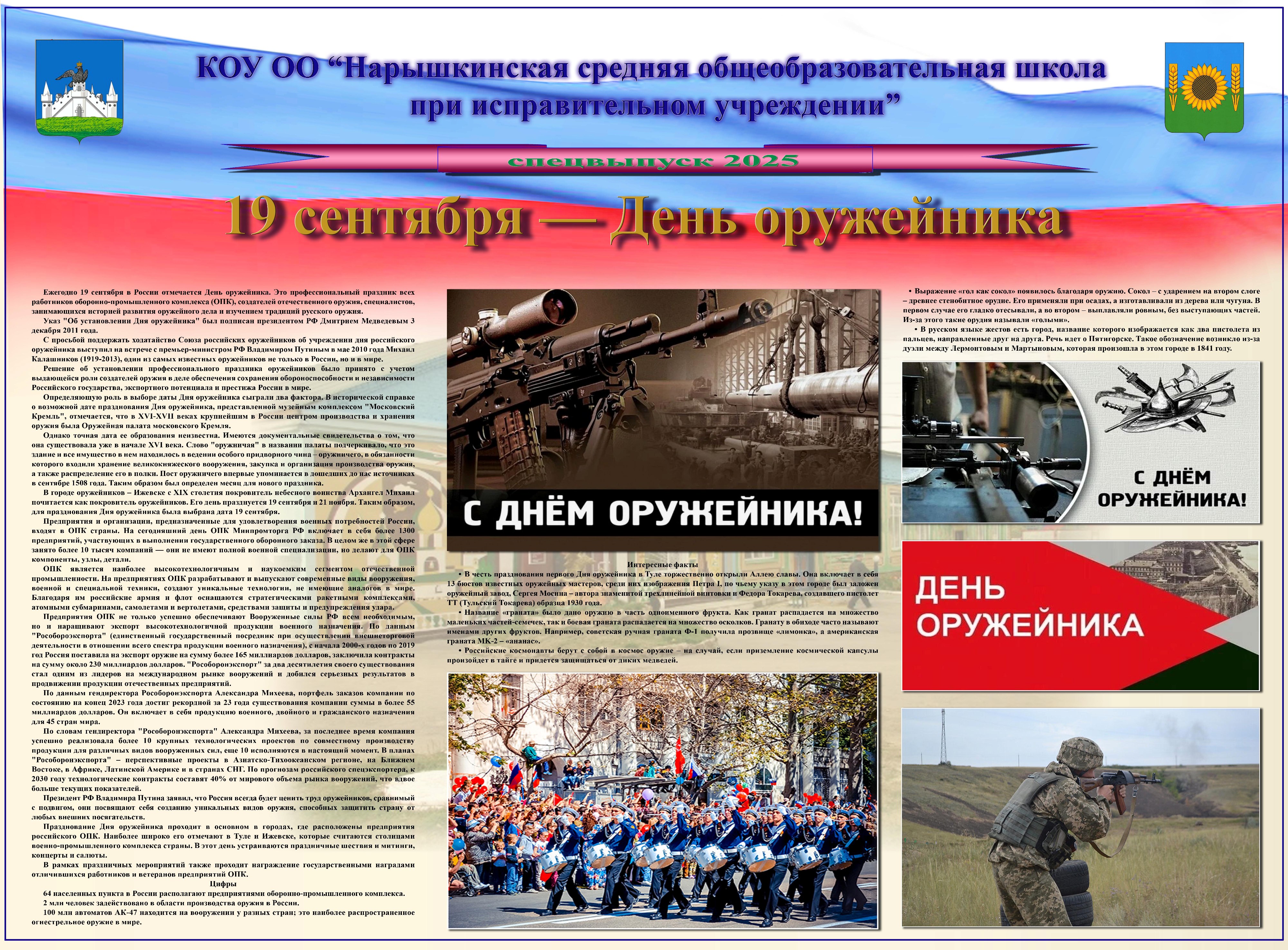 19 сентября 2025 г. в образовательном учреждении издан спецвыпуск стенной печати, посвящённый Дню оружейника.