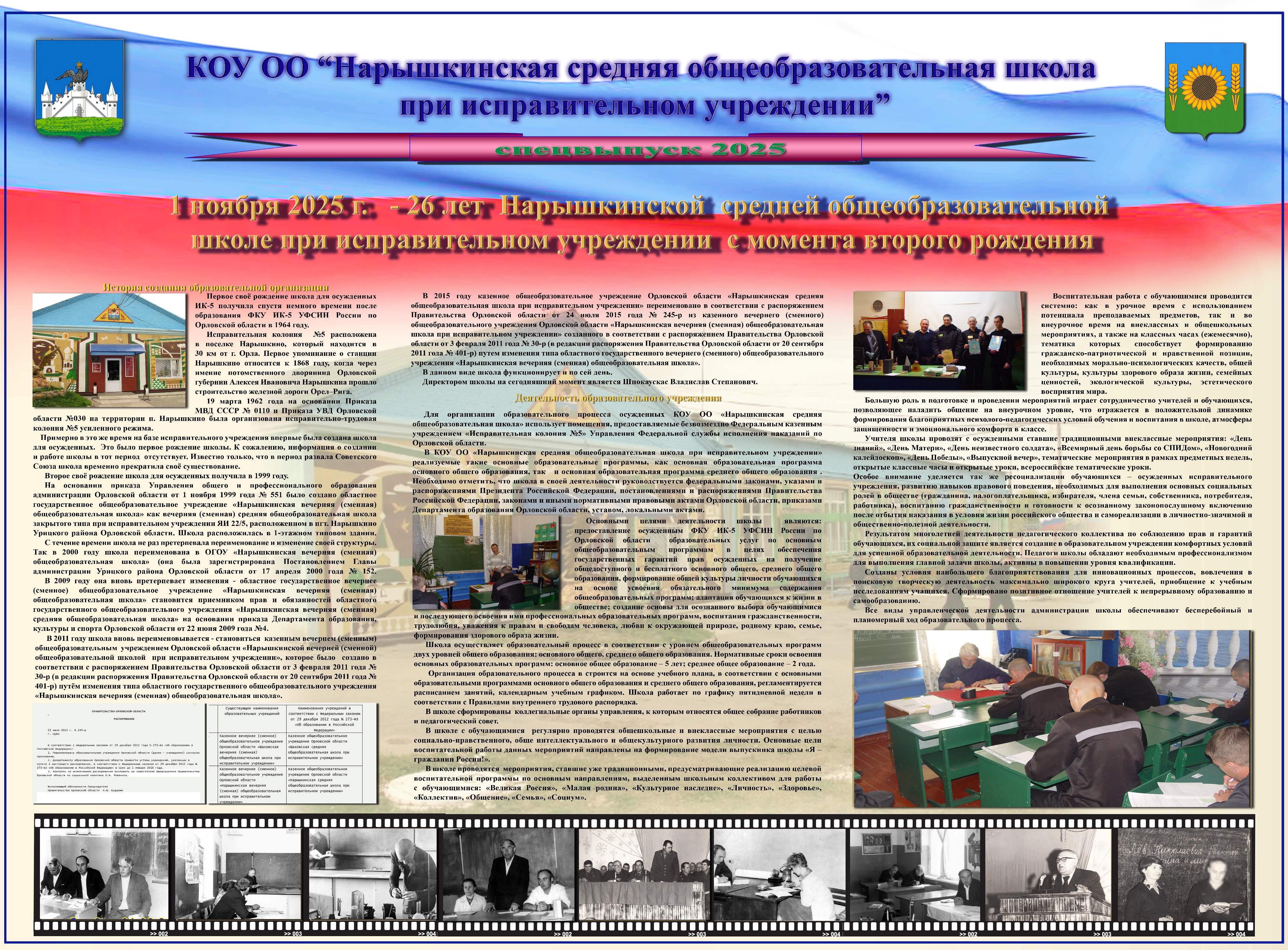 1 ноября - 26 лет со Дня второго рождения КОУ ОО «Нарышкинская средняя общеобразовательная школа при исправительном учреждении»
