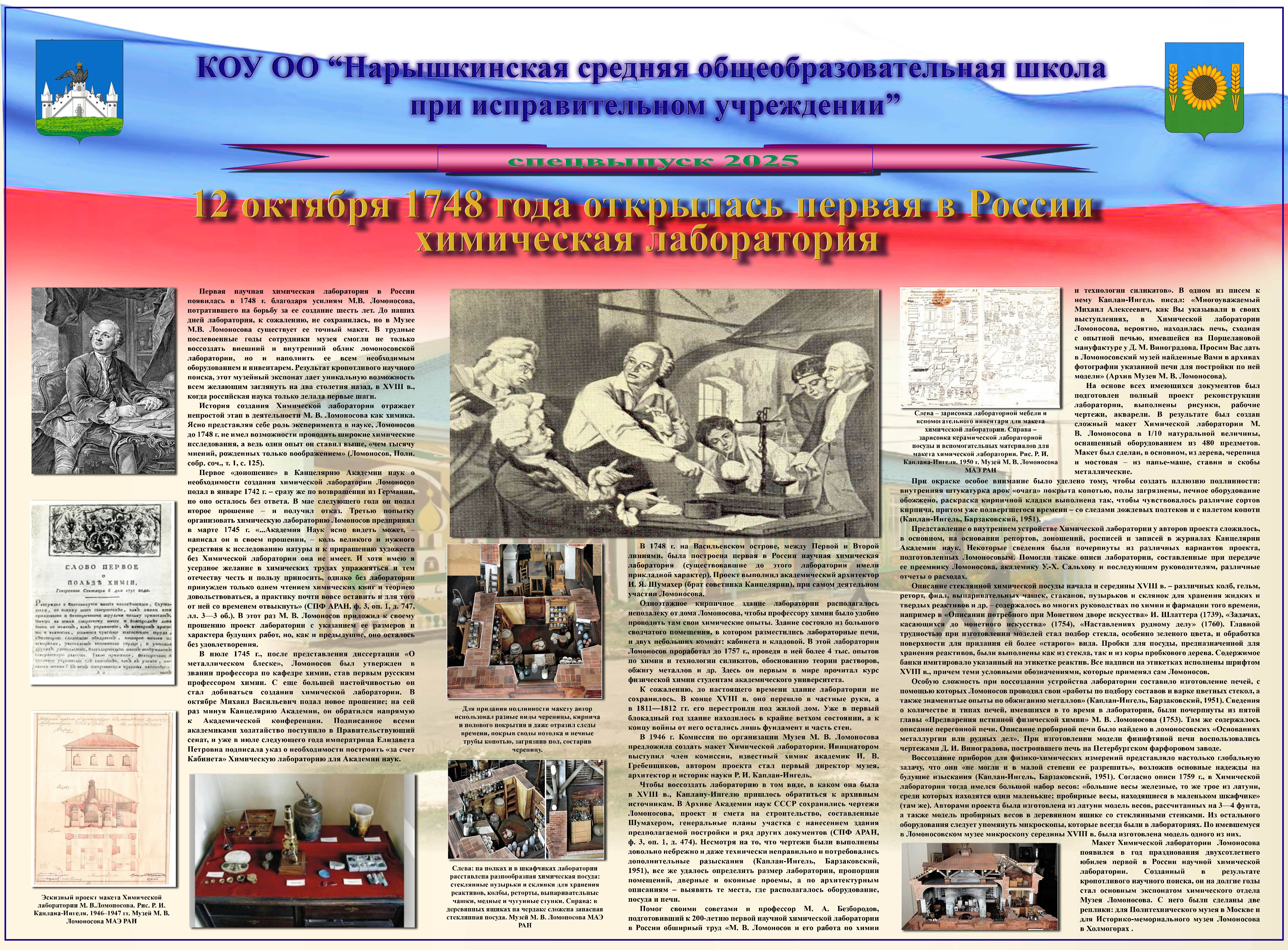 В образовательном учреждении 12 октября 2025 г. издан спецвыпуск стенной печати, посвящённый открытию первой химической лаборатории.