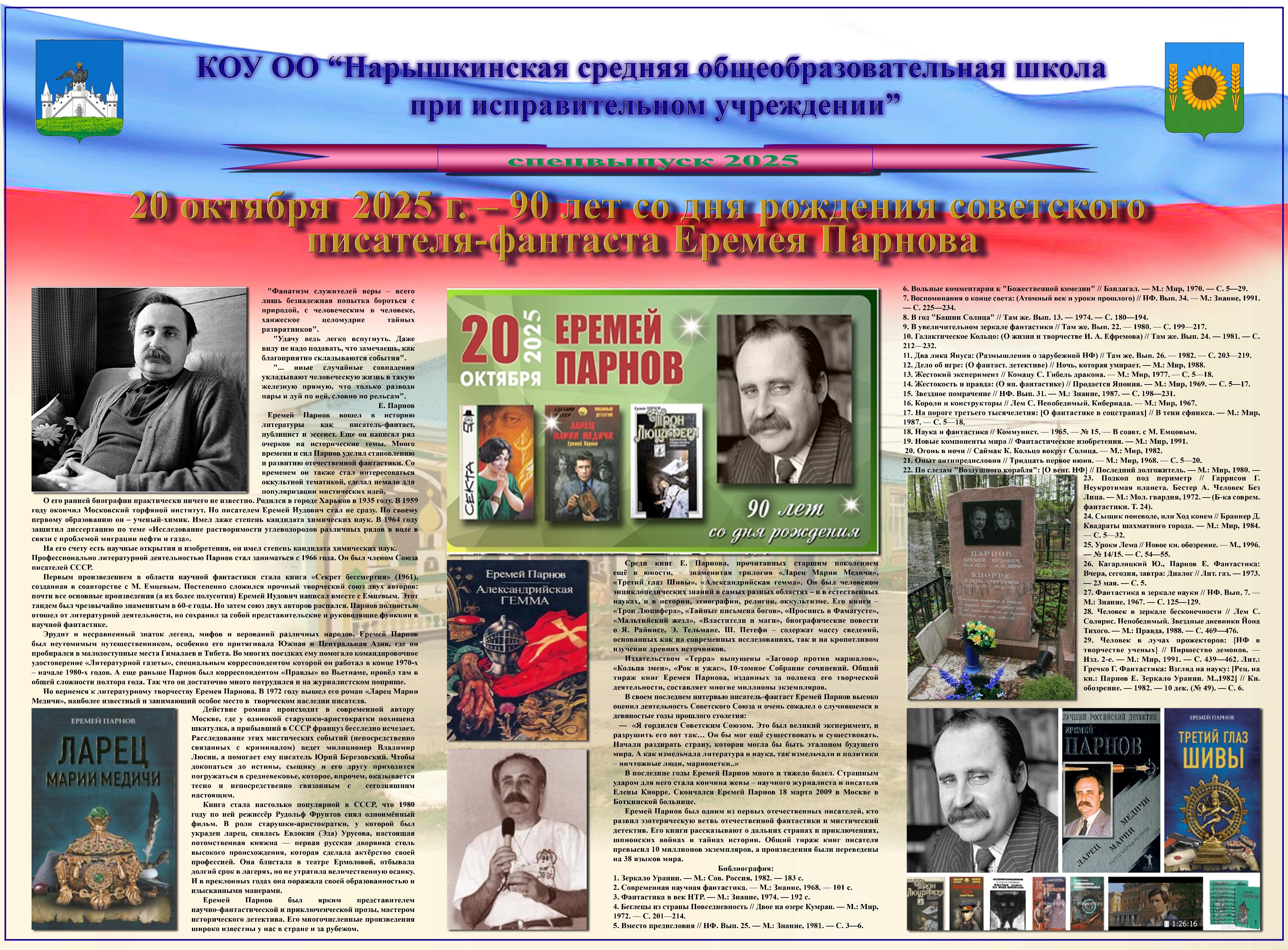 20 октября 2025 г. – 90 лет со дня рождения советского писателя-фантаста Еремея Парнова