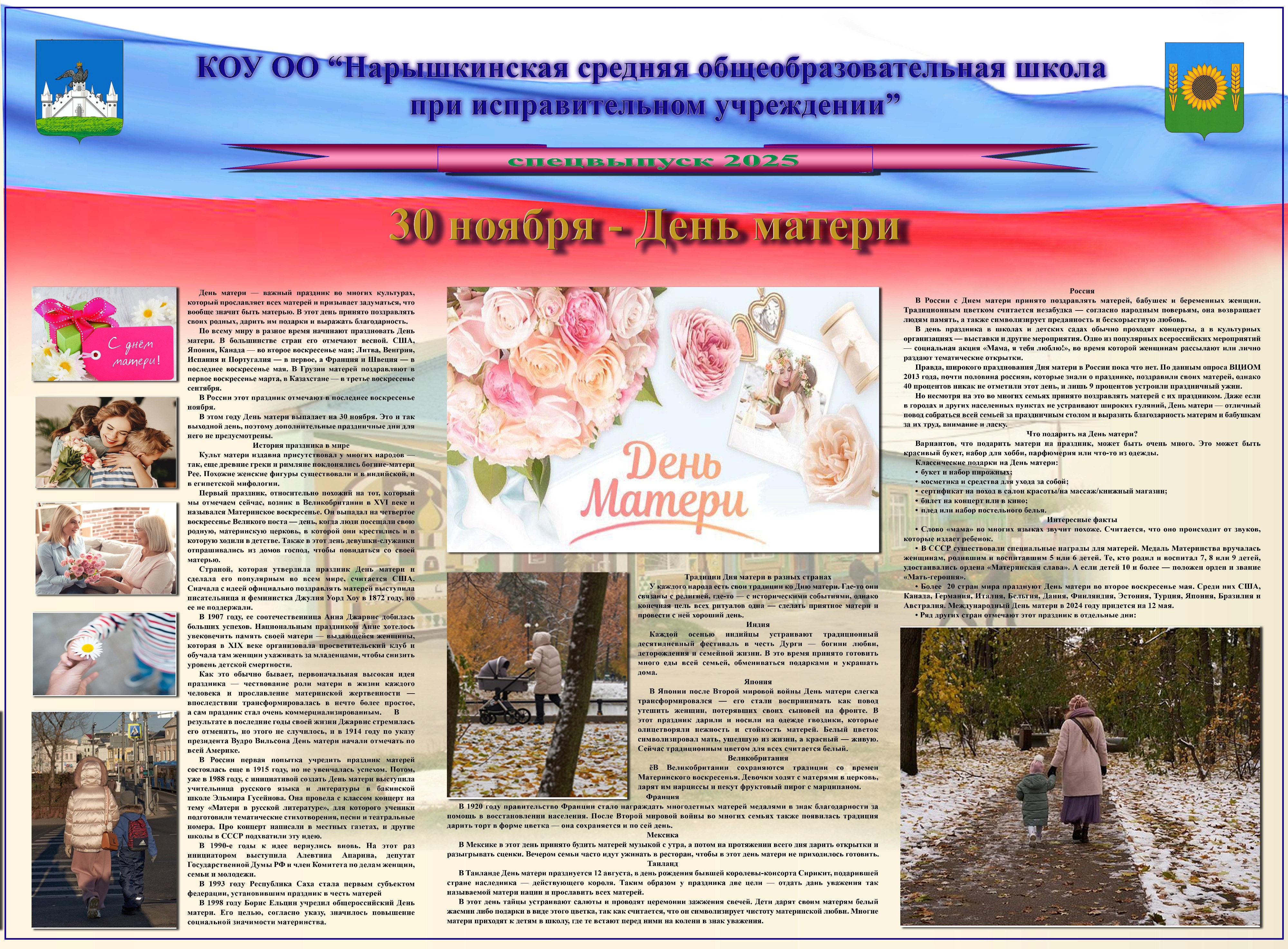 30 ноября 2025 г. в образовательном учреждении издан спецвыпуск стенной печати, посвящённый Дню матери.