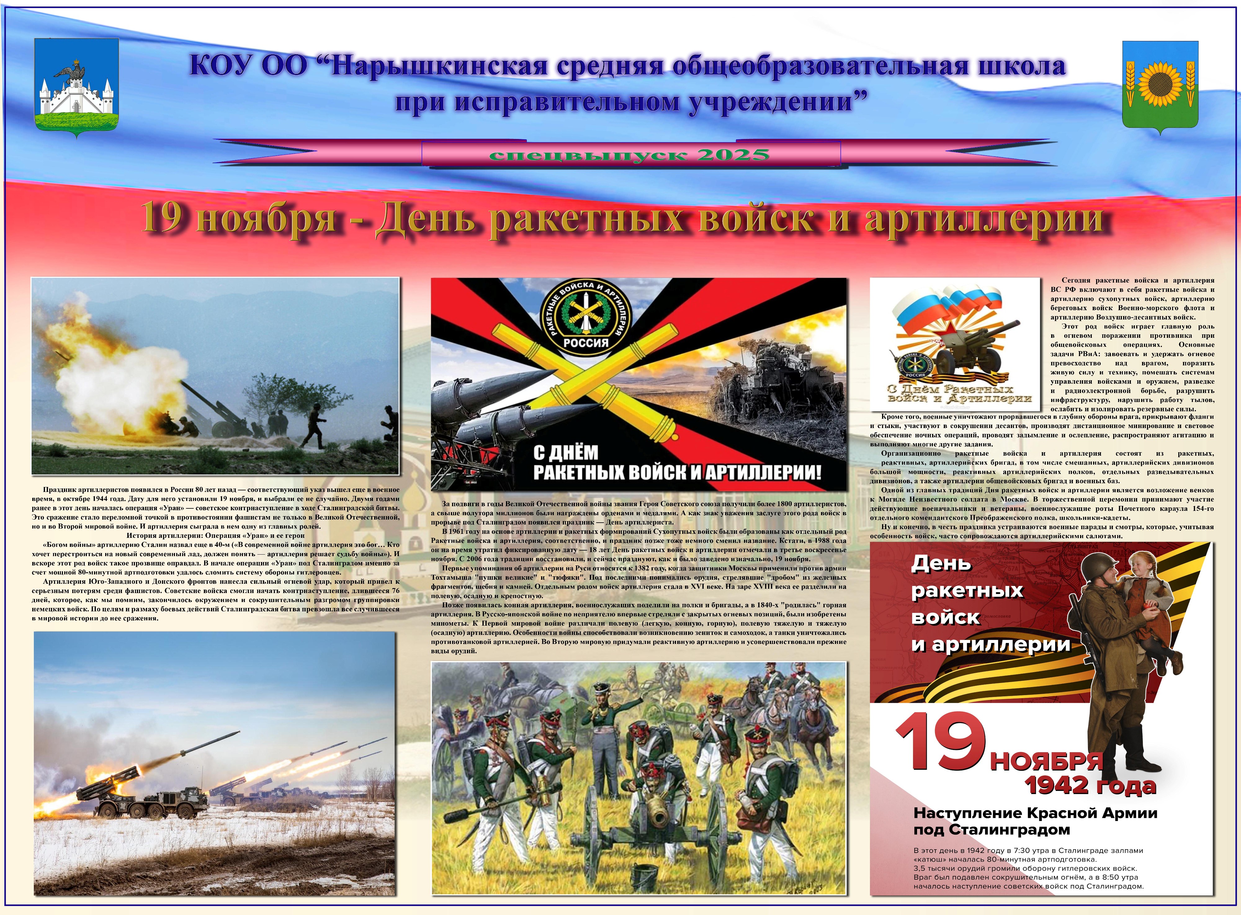 19 ноября 2024 г. в образовательном учреждении издан спецвыпуск стенной печати, посвящённый Дню ракетных войск и артиллерии.