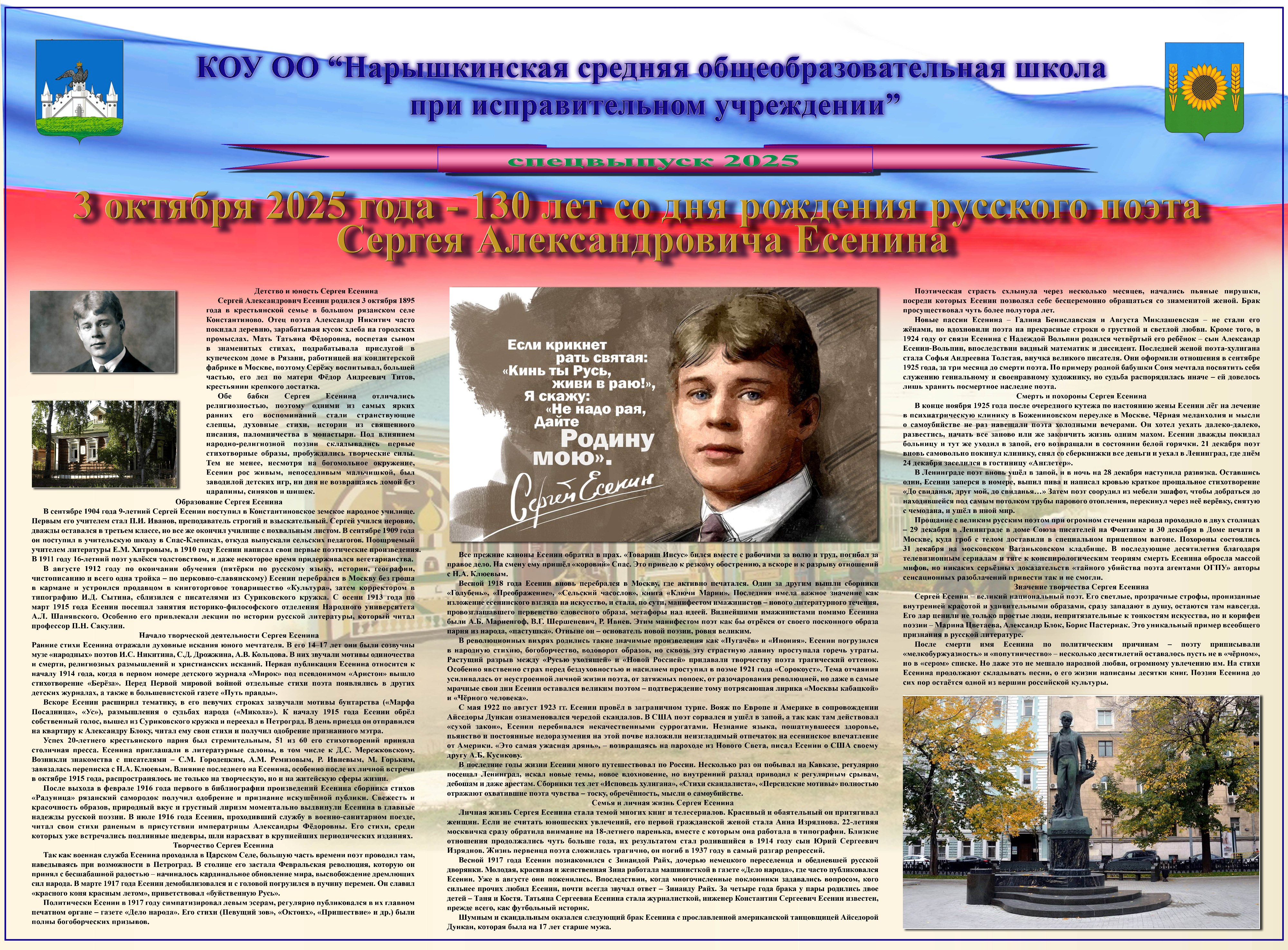 В образовательном учреждении 3 октября 2025 г. издан спецвыпуск стенной печати, посвящённый 130-й годовщине со дня рождения поэта.