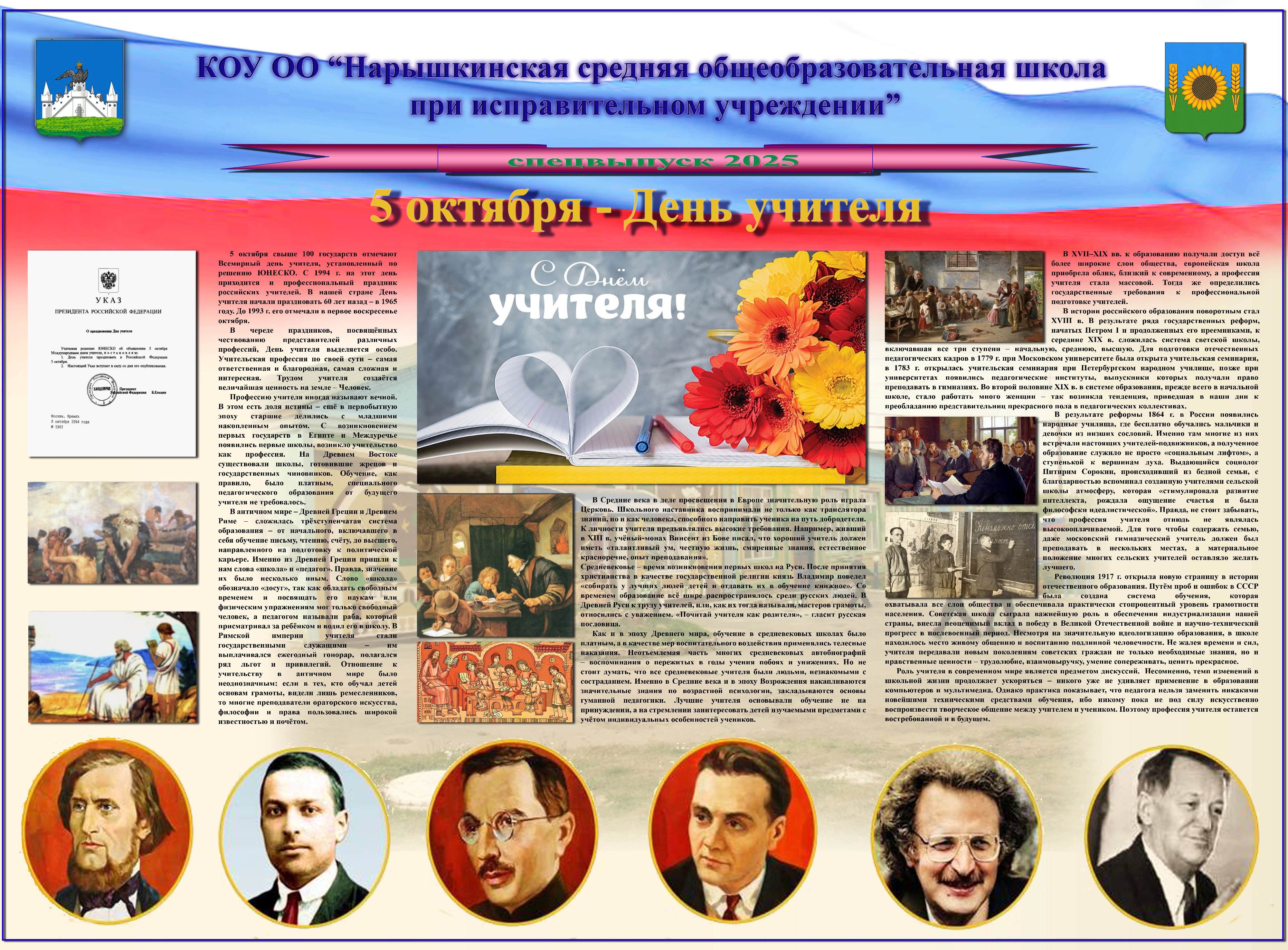 В образовательном учреждении 5 октября 2025 г. издан спецвыпуск стенной печати, посвящённый Всемирному Дню учителя.