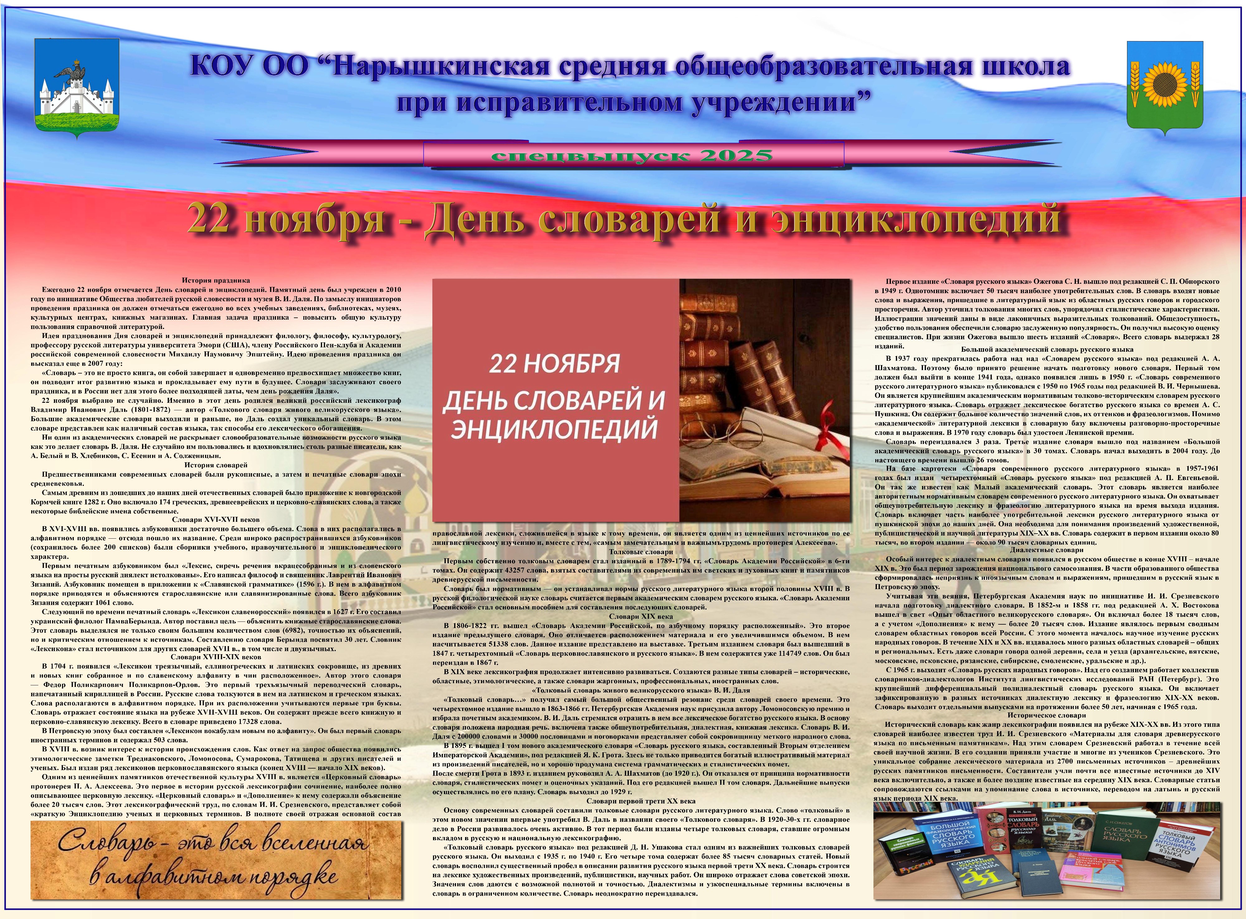 22 ноября 2025 г. в образовательном учреждении изданспецвыпуск стенной печати, посвящённый Дню словарей и энциклопедий.