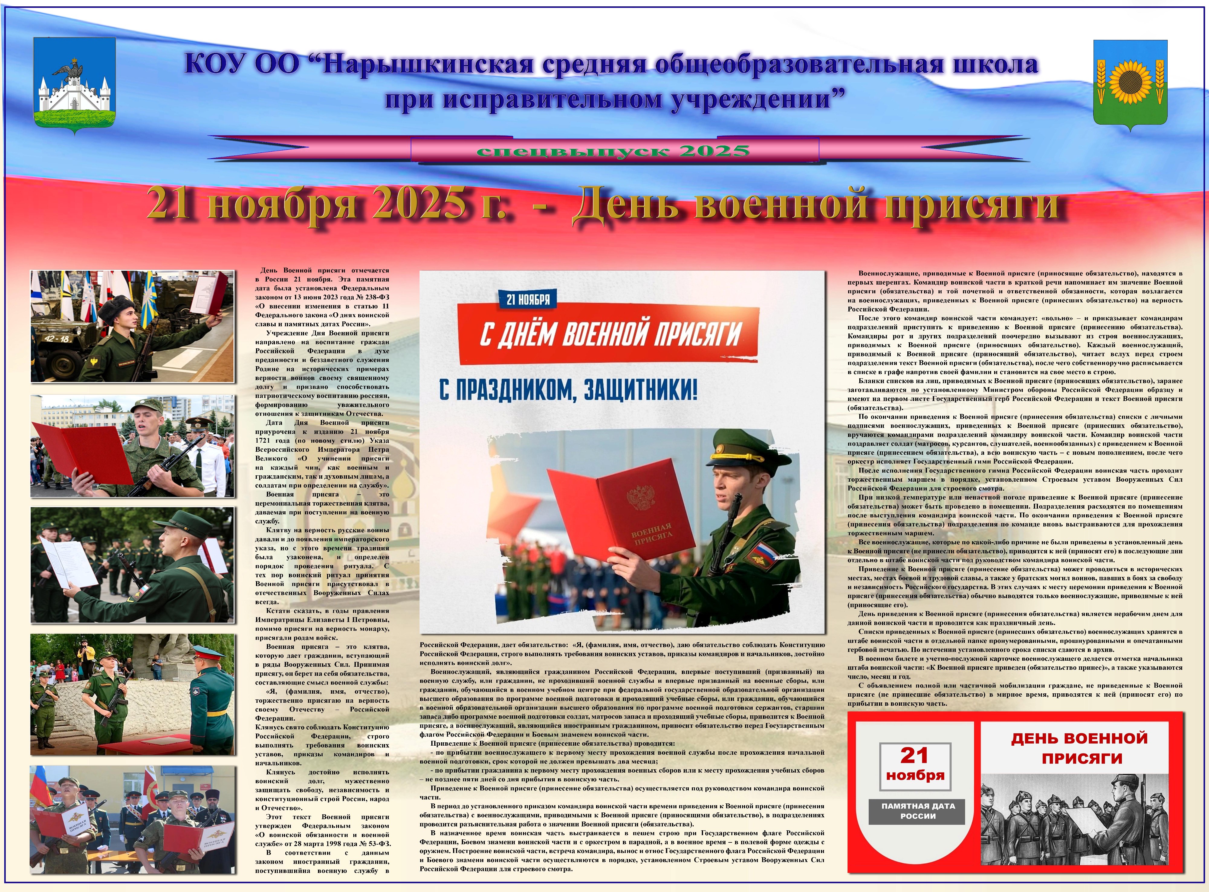 21 ноября 2025 г. в образовательном учреждении издан спецвыпуск стенной печати, посвящённый Дню военной присяги.