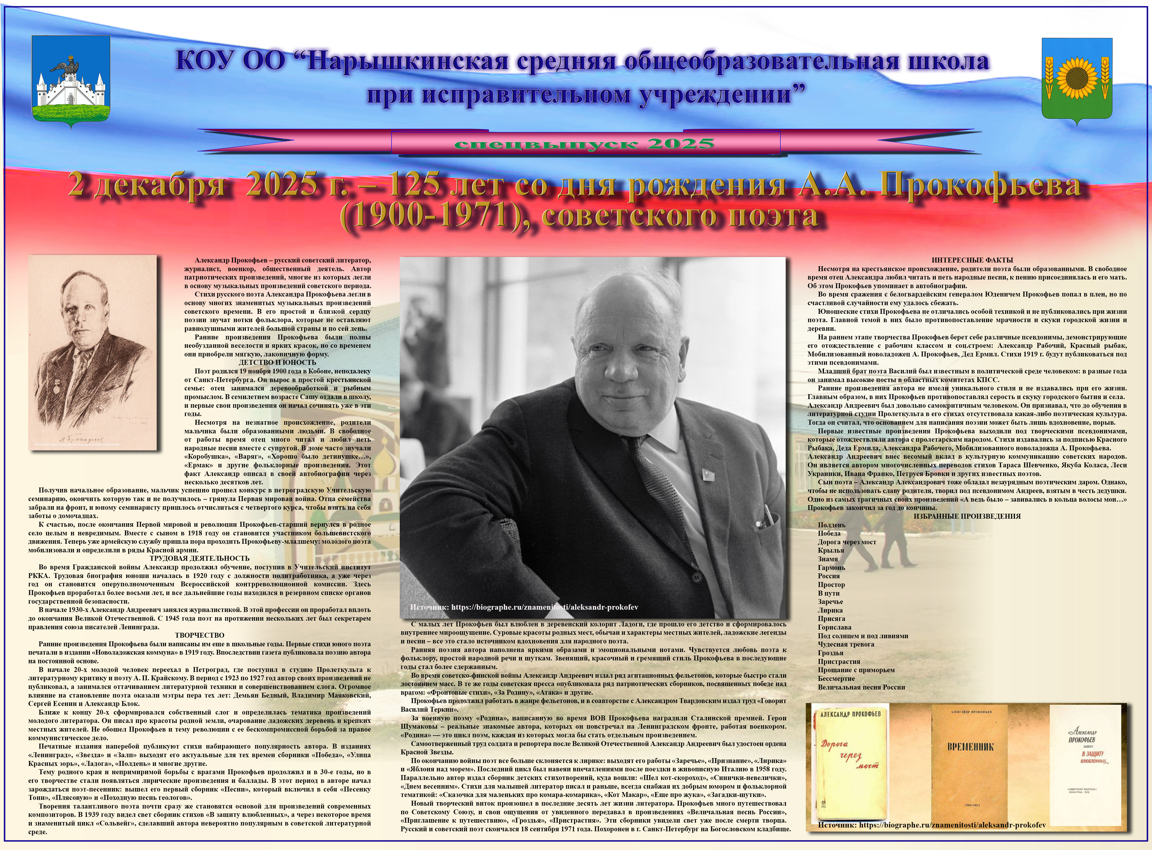 2 декабря 2025 г. в образовательном учреждении издан спецвыпуск стенной печати, посвящённый  125-летию со дня рождения поэта.