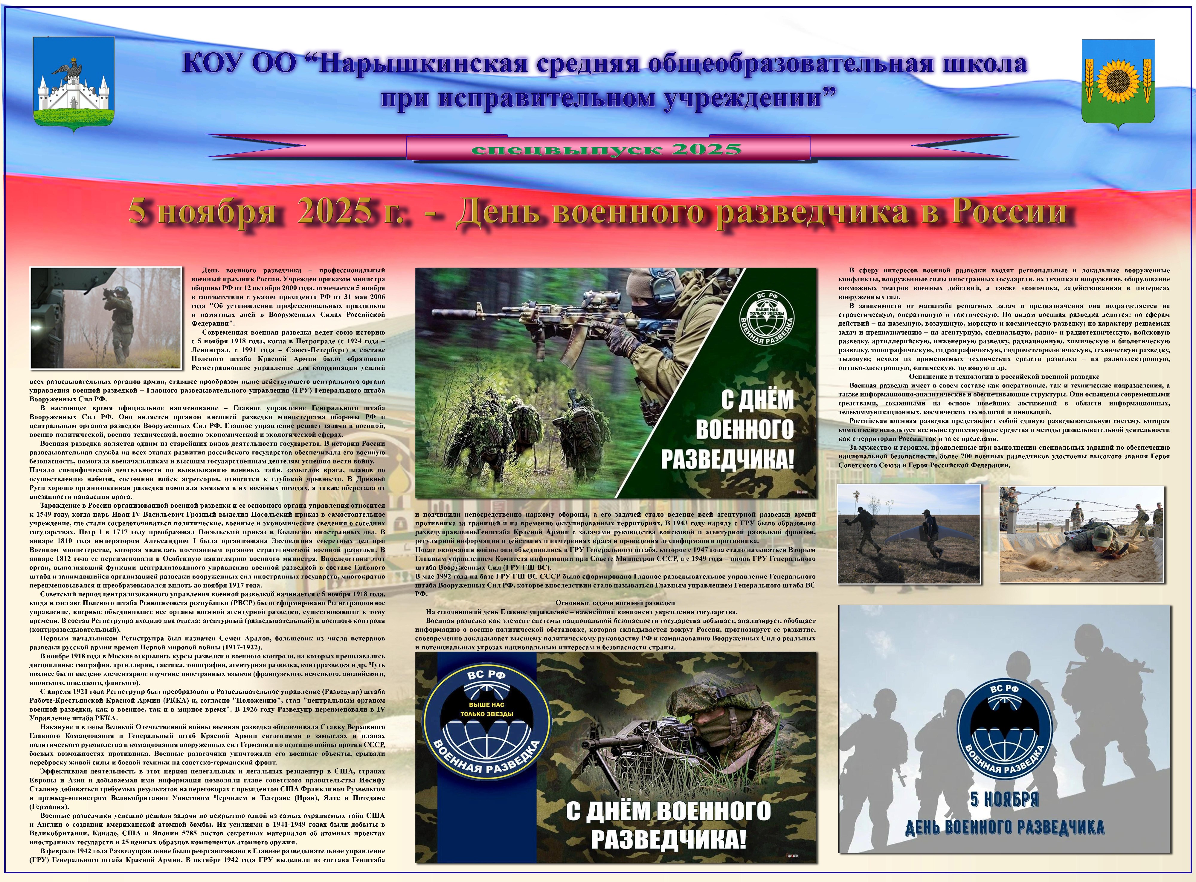 5 ноября 2025 г. в образовательном учреждении издан спецвыпуск стенной печати, посвящённый Дню военного разведчика.
