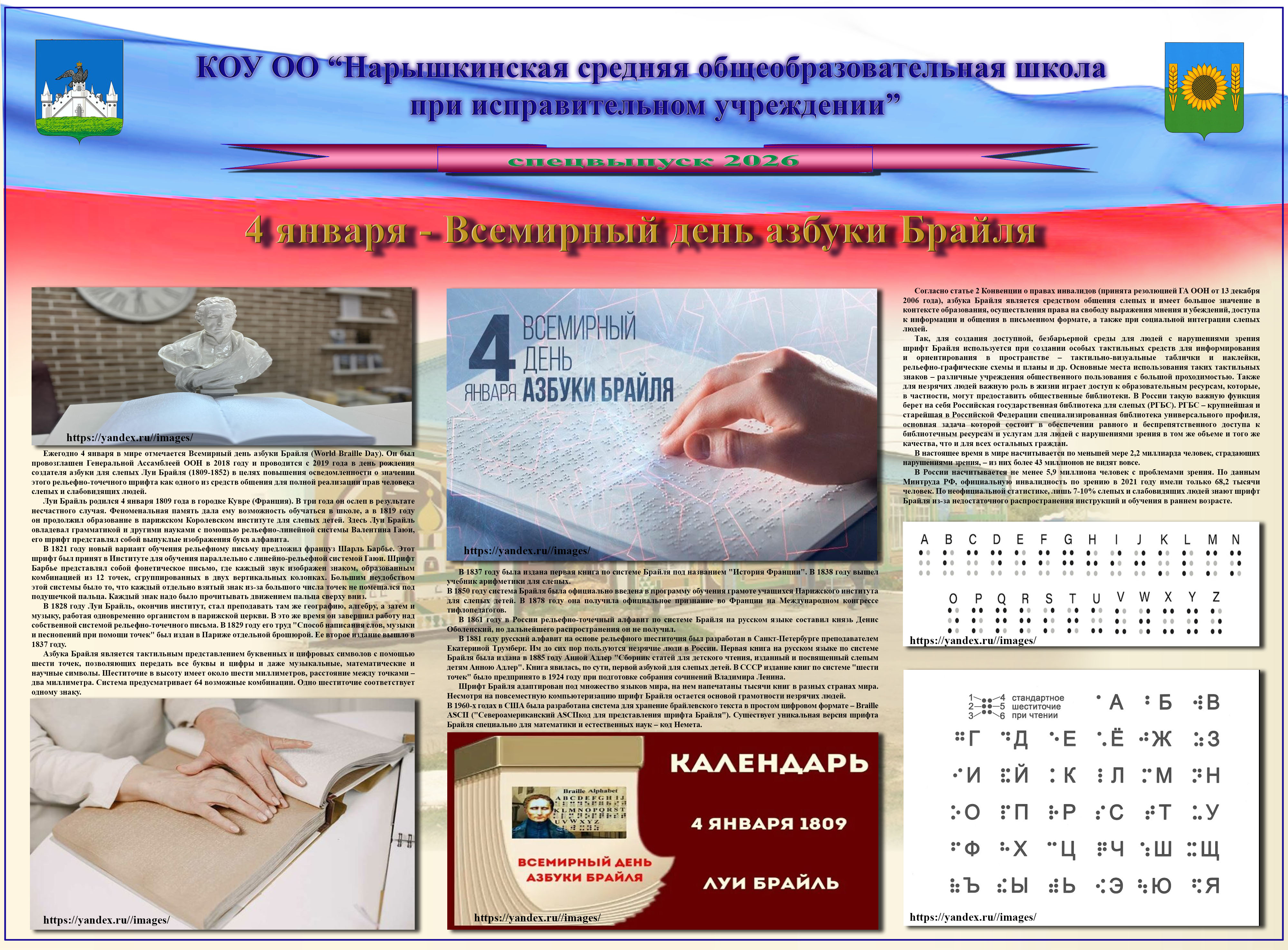 4 января 2026 г. в образовательном учреждении издан спецвыпуск стенной печати, посвящённый -Всемирному дню азбуки Брайля.