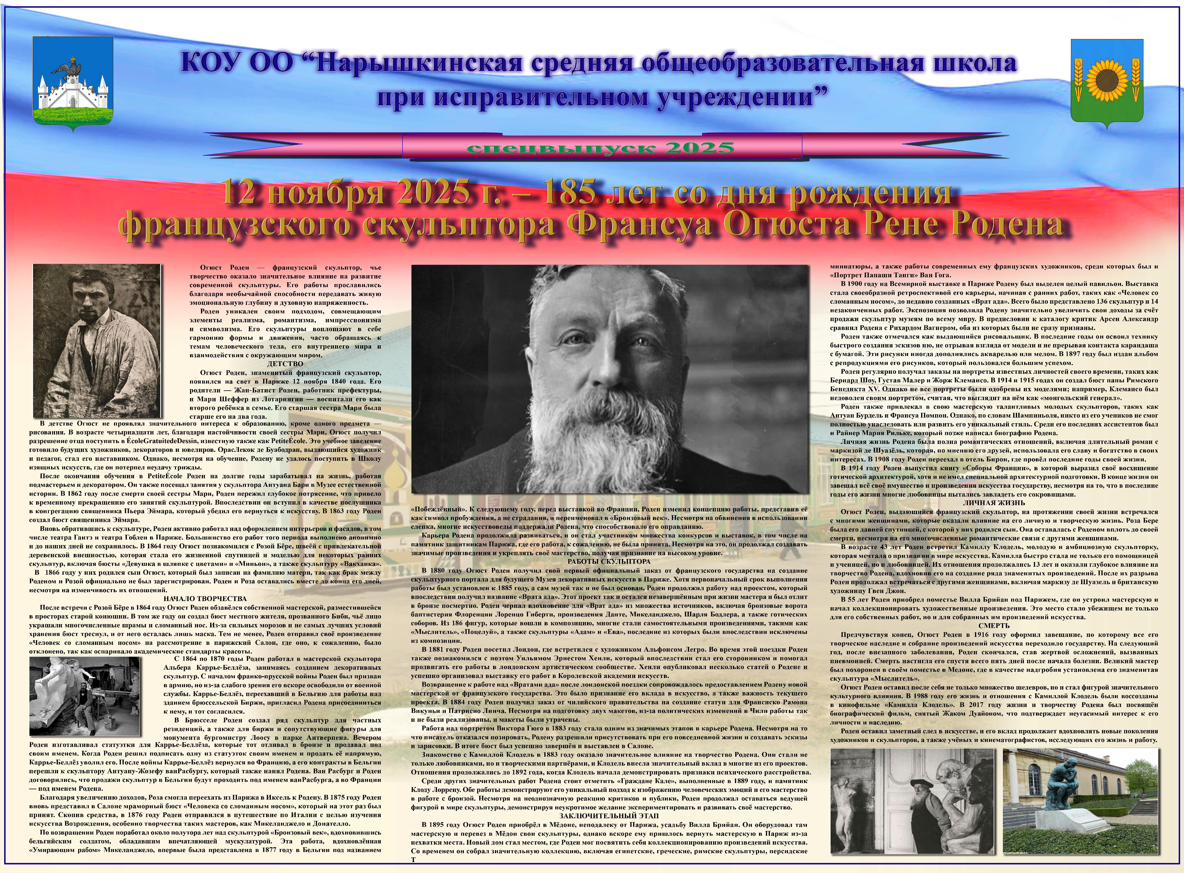 12 ноября 2025 г. в образовательном учреждении издан спецвыпуск стенной печати, посвящённый 185-й годовщине со дня рождения скульптора.